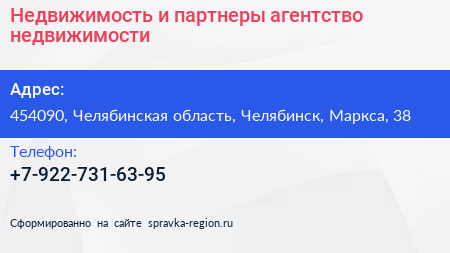 Недвижимость и партнеры, агентство недвижимости по адресу 454090, Челябинская область, Челябинск, Маркса, 38 в дальнейшем Организация, размещена в следующих категориях: