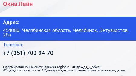 Окна Лайн по адресу 454080, Челябинская область, Челябинск, Энтузиастов, 28а в дальнейшем Организация, размещена в следующих категориях: