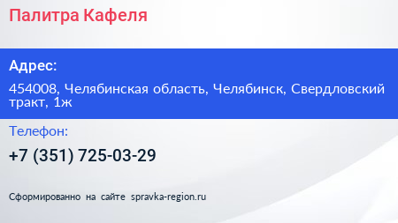 Палитра Кафеля по адресу 454008, Челябинская область, Челябинск, Свердловский тракт, 1ж в дальнейшем Организация, размещена в следующих категориях: