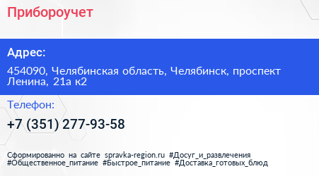 Прибороучет по адресу 454090, Челябинская область, Челябинск, проспект Ленина, 21а к2 в дальнейшем Организация, размещена в следующих категориях: