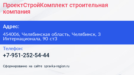 ПроектСтройКомплект, строительная компания по адресу 454006, Челябинская область, Челябинск, 3 Интернационала, 90 ст3 в дальнейшем Организация, размещена в следующих категориях: