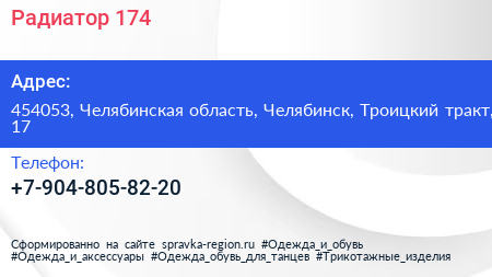 Радиатор 174 по адресу 454053, Челябинская область, Челябинск, Троицкий тракт, 17 в дальнейшем Организация, размещена в следующих категориях: