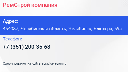 РемСтрой, компания по адресу 454087, Челябинская область, Челябинск, Блюхера, 59а в дальнейшем Организация, размещена в следующих категориях: