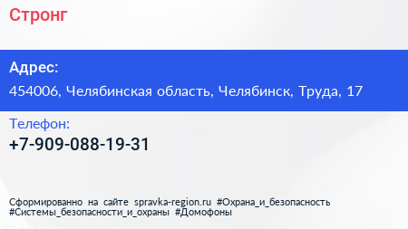 Стронг по адресу 454006, Челябинская область, Челябинск, Труда, 17 в дальнейшем Организация, размещена в следующих категориях: