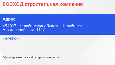ВОСХОД, строительная компания по адресу 454007, Челябинская область, Челябинск, Артиллерийская, 111/1 в дальнейшем Организация, размещена в следующих категориях:
