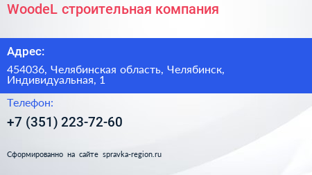 WoodeL, строительная компания по адресу 454036, Челябинская область, Челябинск, Индивидуальная, 1 в дальнейшем Организация, размещена в следующих категориях: