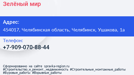 Зелёный мир по адресу 454017, Челябинская область, Челябинск, Ушакова, 1а в дальнейшем Организация, размещена в следующих категориях: