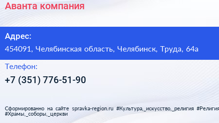 Аванта, компания по адресу 454091, Челябинская область, Челябинск, Труда, 64а в дальнейшем Организация, размещена в следующих категориях:
