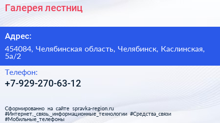 Галерея лестниц по адресу 454084, Челябинская область, Челябинск, Каслинская, 5а/2 в дальнейшем Организация, размещена в следующих категориях: