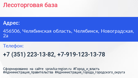 Лесоторговая база по адресу 456506, Челябинская область, Челябинск, Новоградская, 2а в дальнейшем Организация, размещена в следующих категориях: