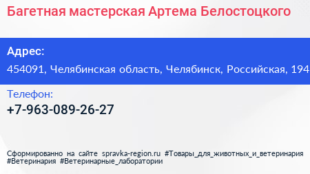 Багетная мастерская Артема Белостоцкого по адресу 454091, Челябинская область, Челябинск, Российская, 194 в дальнейшем Организация, размещена в следующих категориях: