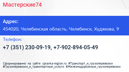 Мастерские74 по адресу 454020, Челябинская область, Челябинск, Худякова, 9 в дальнейшем Организация, размещена в следующих категориях:
