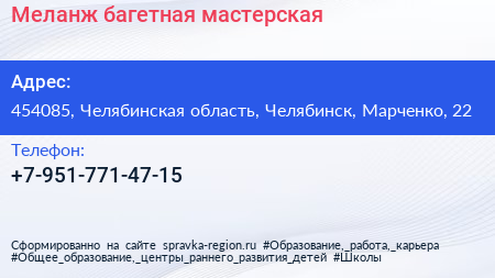 Меланж, багетная мастерская по адресу 454085, Челябинская область, Челябинск, Марченко, 22 в дальнейшем Организация, размещена в следующих категориях: