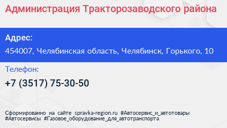 Администрация Тракторозаводского района по адресу 454007, Челябинская область, Челябинск, Горького, 10 в дальнейшем Организация, размещена в следующих категориях: