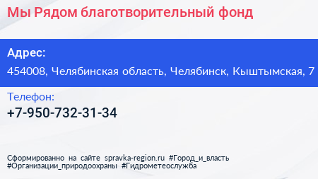 Мы Рядом!, благотворительный фонд по адресу 454008, Челябинская область, Челябинск, Кыштымская, 7 в дальнейшем Организация, размещена в следующих категориях: