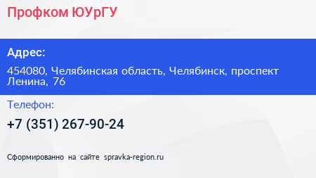 Профком, ЮУрГУ по адресу 454080, Челябинская область, Челябинск, проспект Ленина, 76 в дальнейшем Организация, размещена в следующих категориях: