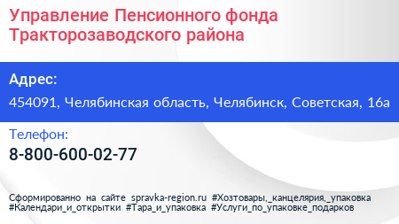 Управление Пенсионного фонда Тракторозаводского района по адресу 454091, Челябинская область, Челябинск, Советская, 16а в дальнейшем Организация, размещена в следующих категориях: