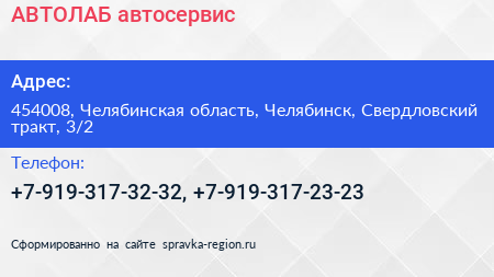 АВТОЛАБ, автосервис по адресу 454008, Челябинская область, Челябинск, Свердловский тракт, 3/2 в дальнейшем Организация, размещена в следующих категориях:
