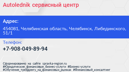 Autolednik, сервисный центр по адресу 454081, Челябинская область, Челябинск, Либединского, 51/1 в дальнейшем Организация, размещена в следующих категориях:
