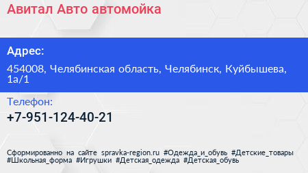 Авитал-Авто, автомойка по адресу 454008, Челябинская область, Челябинск, Куйбышева, 1а/1 в дальнейшем Организация, размещена в следующих категориях: