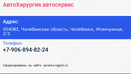 АвтоХирургия, автосервис по адресу 454081, Челябинская область, Челябинск, Жемчужная, 2/1 в дальнейшем Организация, размещена в следующих категориях:
