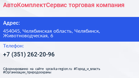 АвтоКомплектСервис, торговая компания по адресу 454045, Челябинская область, Челябинск, Животноводческая, 6 в дальнейшем Организация, размещена в следующих категориях: