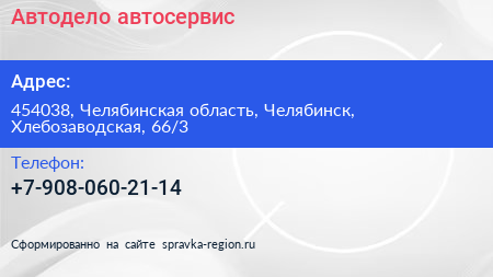 Автодело, автосервис по адресу 454038, Челябинская область, Челябинск, Хлебозаводская, 66/3 в дальнейшем Организация, размещена в следующих категориях: