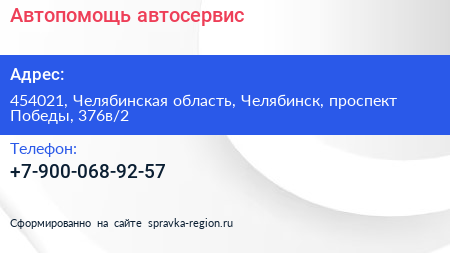 Автопомощь, автосервис по адресу 454021, Челябинская область, Челябинск, проспект Победы, 376в/2 в дальнейшем Организация, размещена в следующих категориях: