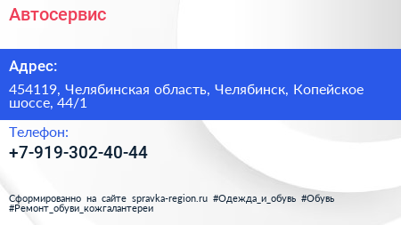 Автосервис по адресу 454119, Челябинская область, Челябинск, Копейское шоссе, 44/1 в дальнейшем Организация, размещена в следующих категориях: