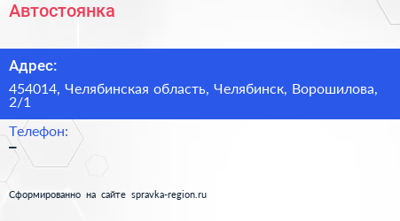 Автостоянка по адресу 454014, Челябинская область, Челябинск, Ворошилова, 2/1 в дальнейшем Организация, размещена в следующих категориях: