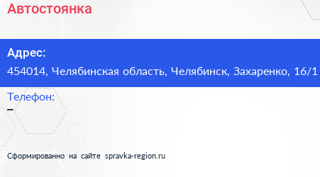 Автостоянка по адресу 454014, Челябинская область, Челябинск, Захаренко, 16/1 в дальнейшем Организация, размещена в следующих категориях: