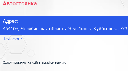 Автостоянка по адресу 454106, Челябинская область, Челябинск, Куйбышева, 7/3 в дальнейшем Организация, размещена в следующих категориях: