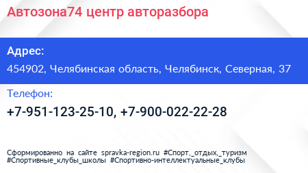 Автозона74, центр авторазбора по адресу 454902, Челябинская область, Челябинск, Северная, 37 в дальнейшем Организация, размещена в следующих категориях: