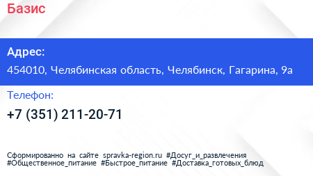 Базис по адресу 454010, Челябинская область, Челябинск, Гагарина, 9а в дальнейшем Организация, размещена в следующих категориях: