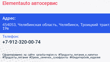 Elementauto, автосервис по адресу 454053, Челябинская область, Челябинск, Троицкий тракт, 19в в дальнейшем Организация, размещена в следующих категориях: