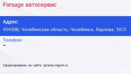 Forsage, автосервис по адресу 454108, Челябинская область, Челябинск, Харлова, 10/3 в дальнейшем Организация, размещена в следующих категориях: