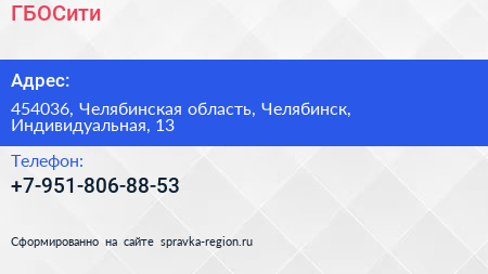 ГБОСити по адресу 454036, Челябинская область, Челябинск, Индивидуальная, 13 в дальнейшем Организация, размещена в следующих категориях: