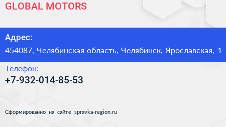 GLOBAL-MOTORS по адресу 454087, Челябинская область, Челябинск, Ярославская, 1 в дальнейшем Организация, размещена в следующих категориях: