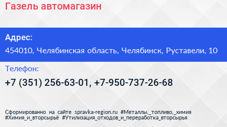 Газель, автомагазин по адресу 454010, Челябинская область, Челябинск, Руставели, 10 в дальнейшем Организация, размещена в следующих категориях: