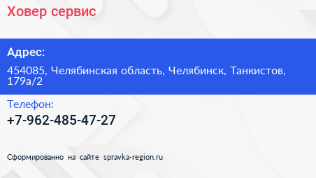 Ховер сервис по адресу 454085, Челябинская область, Челябинск, Танкистов, 179а/2 в дальнейшем Организация, размещена в следующих категориях:
