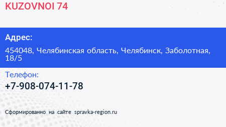 KUZOVNOI-74 по адресу 454048, Челябинская область, Челябинск, Заболотная, 18/5 в дальнейшем Организация, размещена в следующих категориях: