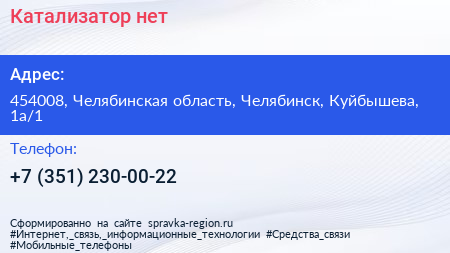 Катализатор.нет по адресу 454008, Челябинская область, Челябинск, Куйбышева, 1а/1 в дальнейшем Организация, размещена в следующих категориях: