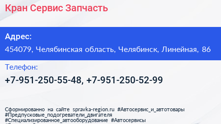 Кран Сервис-Запчасть по адресу 454079, Челябинская область, Челябинск, Линейная, 86 в дальнейшем Организация, размещена в следующих категориях: