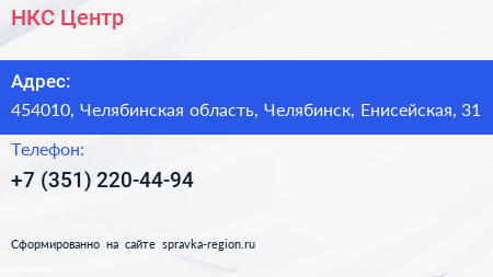НКС Центр по адресу 454010, Челябинская область, Челябинск, Енисейская, 31 в дальнейшем Организация, размещена в следующих категориях: