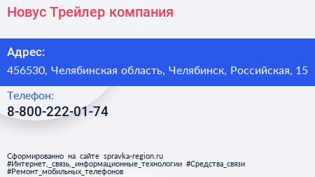 Новус Трейлер, компания по адресу 456530, Челябинская область, Челябинск, Российская, 15 в дальнейшем Организация, размещена в следующих категориях: