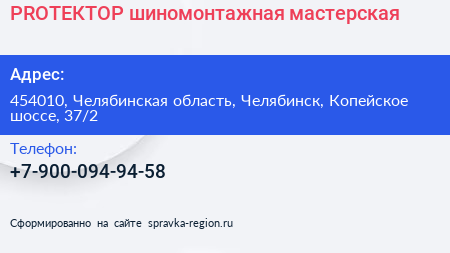 PROТЕКТОР, шиномонтажная мастерская по адресу 454010, Челябинская область, Челябинск, Копейское шоссе, 37/2 в дальнейшем Организация, размещена в следующих категориях: