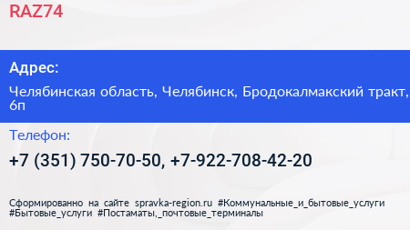 RAZ74 по адресу Челябинская область, Челябинск, Бродокалмакский тракт, 6п в дальнейшем Организация, размещена в следующих категориях: