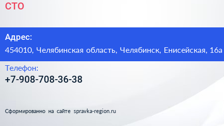 СТО по адресу 454010, Челябинская область, Челябинск, Енисейская, 16а в дальнейшем Организация, размещена в следующих категориях: