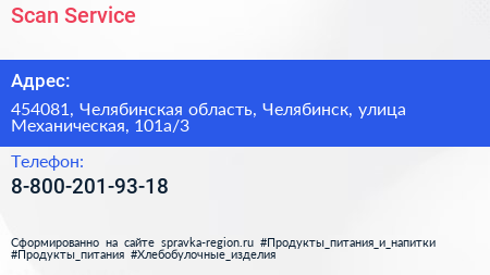 Scan Service по адресу 454081, Челябинская область, Челябинск, улица Механическая, 101а/3 в дальнейшем Организация, размещена в следующих категориях: