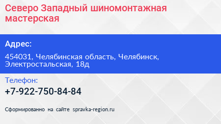 Северо-Западный, шиномонтажная мастерская по адресу 454031, Челябинская область, Челябинск, Электростальская, 18д в дальнейшем Организация, размещена в следующих категориях: